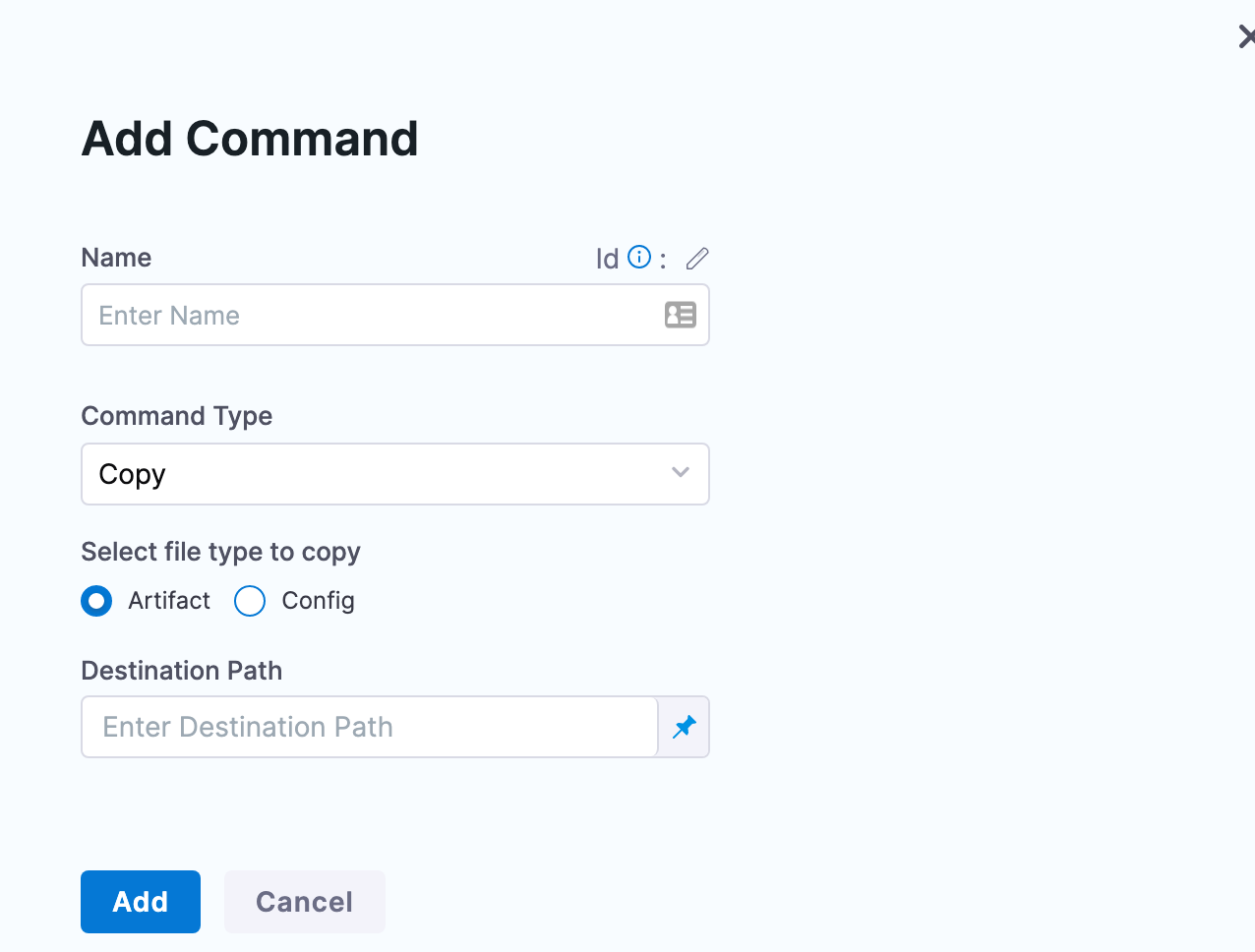Using the Copy command type, you can copy the deployment artifact onto the target hosts of the deployment.