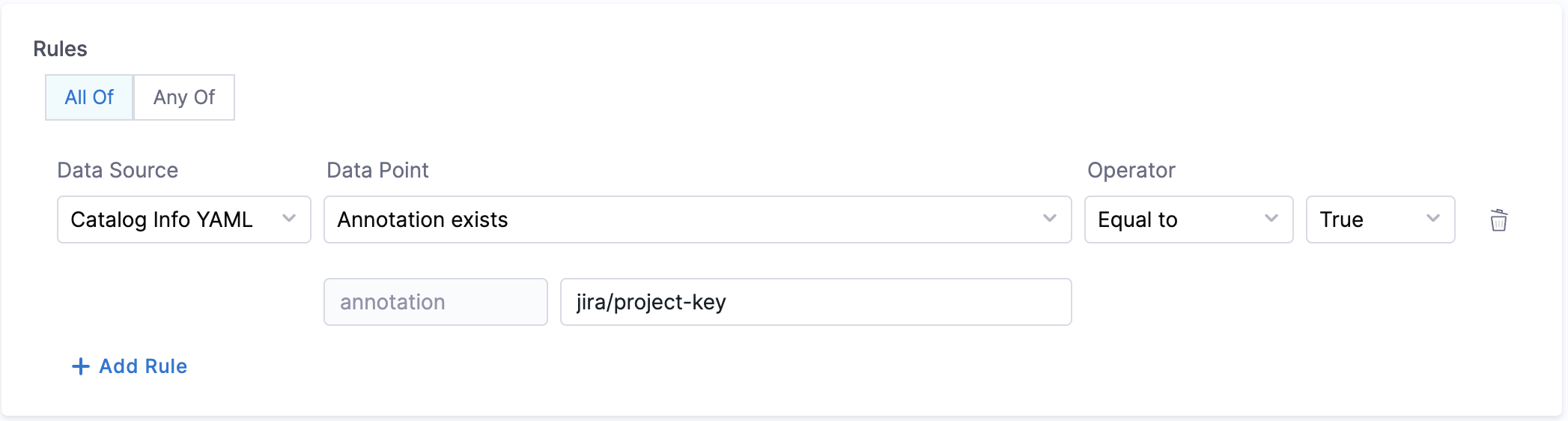 field is configured or not. - Calculation Method: The catalog YAML is inspected to check if the particular annotation is present under the metadata field.