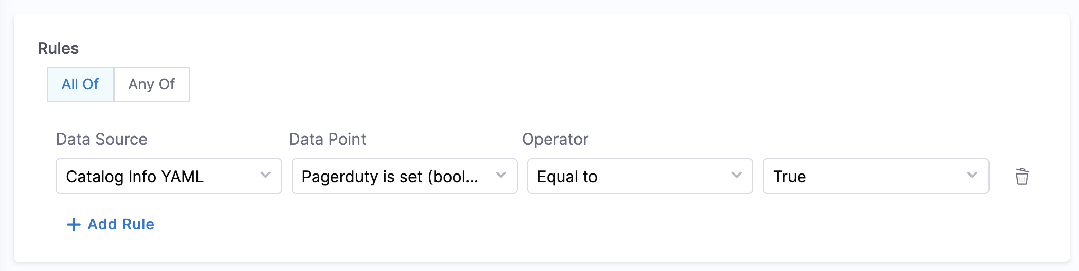 - Is on-call Set - This data point can be used for creating rules that will check if the on-call is set for a given service.