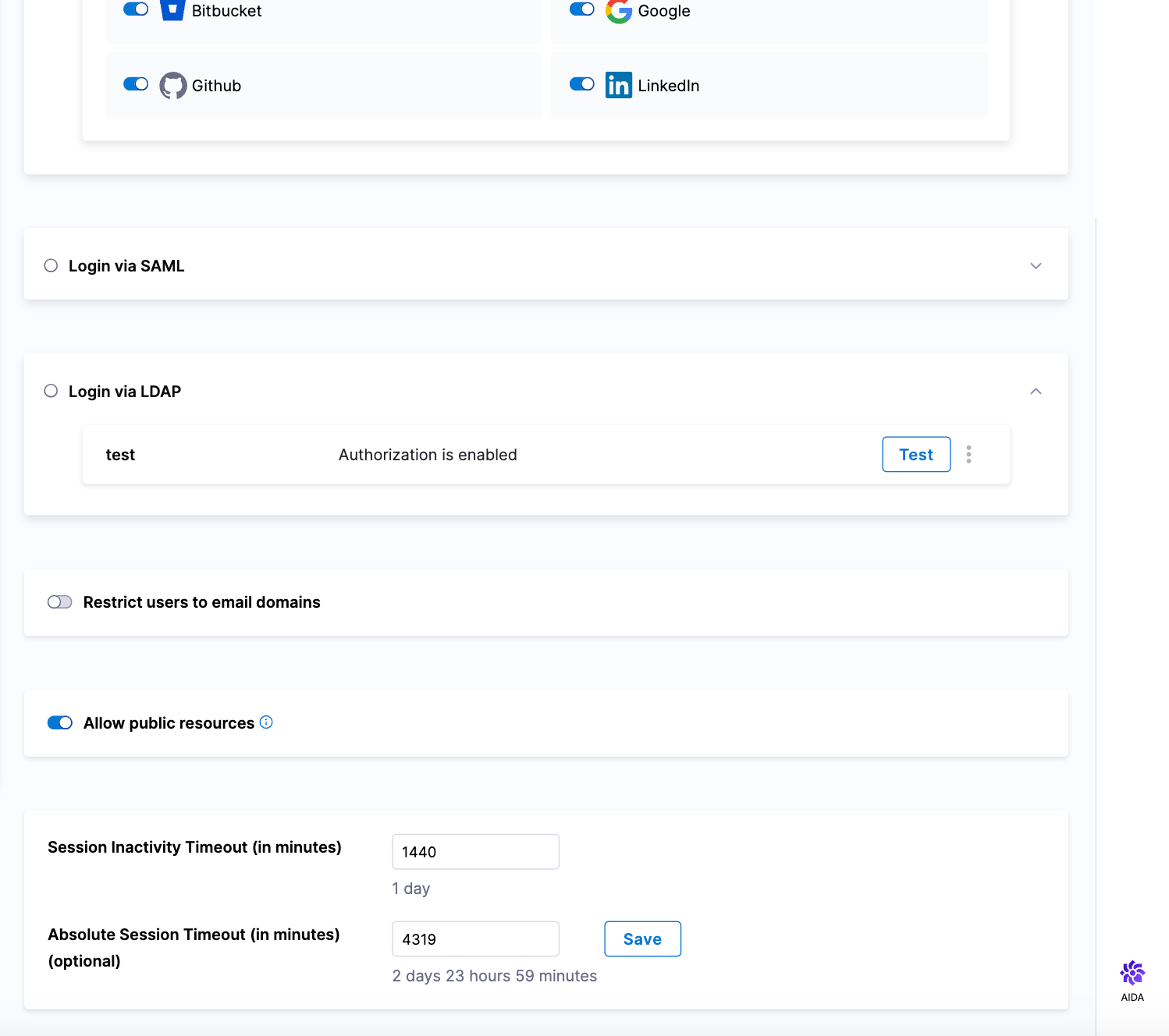 - Set inactive session timeout