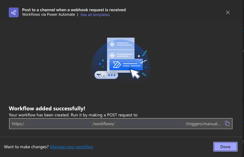 - In the Workflows section, select the workflow Post to a channel when webhook request is received.