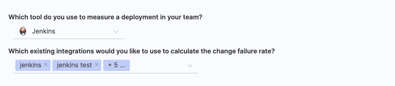 - Select the relevant Jenkins integrations that you wish to use for calculating change failure rate.